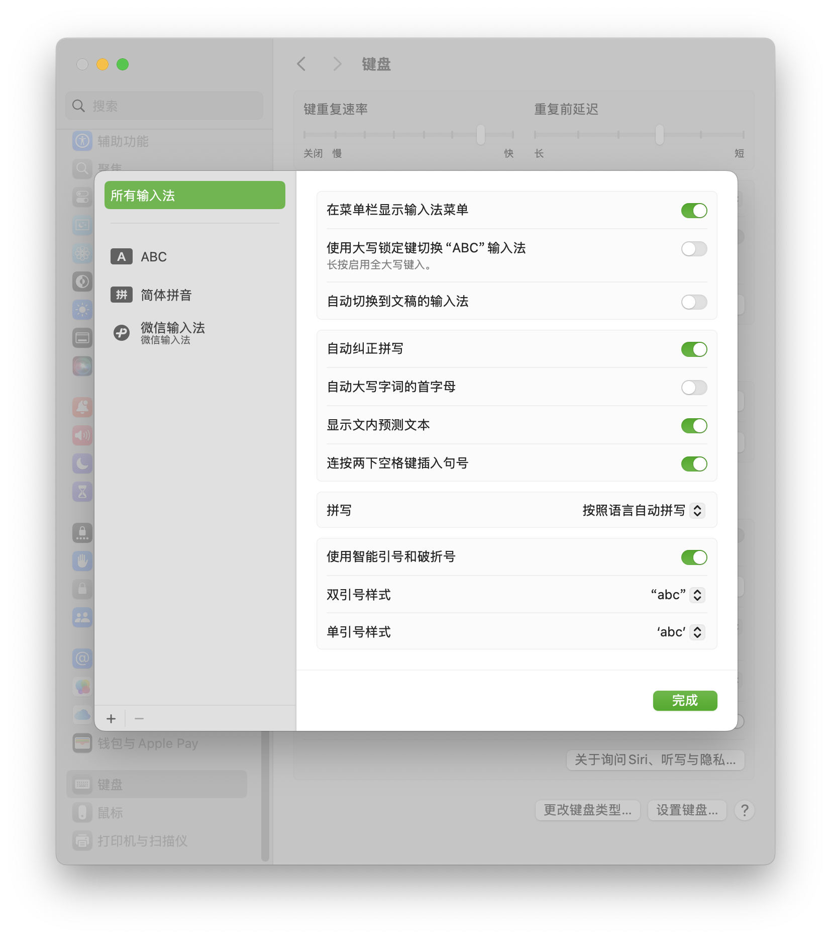 MAC上安装微信输入法额外解决了一个从使用macOS系统至今就极度困扰的问题,那就是系统默认的长按 Capslock 切换大小写,短按切换中英文输入的设定使得输入大小写混合的字母的时候无法顺畅盲打,每次都需要确认长按时间够不够和瞄一下大小写指示灯确认状态,这就导致用起来非常的不顺畅。